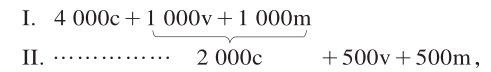 2 000c+500v+500m=3 000。