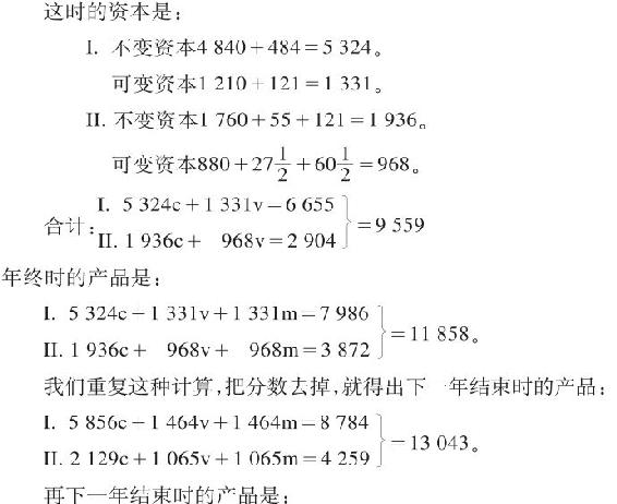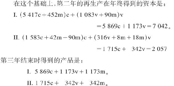 如果再生产是在这个基础上并且在其他条件不变的情况下继续进行,下一年结束时,我们就得出:
