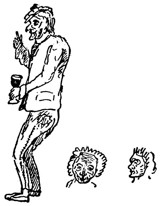 旁边画的是一个悲伤厌世的小伙子;他在巴黎拜访过亨·海涅,受了海涅的感染,以后他又到泰奥多尔·蒙特那儿去,学会了蒙特的某些词句,没有这些词句,悲伤厌世的人是无法生活的。从那时起,他明显地消瘦了,正打算写一本书来论述悲伤厌世是预防肥胖的唯一有效方法。