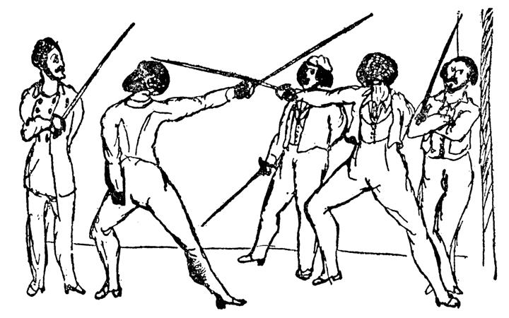 撇开我写这封信的第一页时所选择的格式不谈,我要告诉你,你用蹩脚的封缄纸来封自己的信件,几乎都粘不住,对此我是绝对不会感谢你的。你不论用什么封套的什么勋章来祝我交好运,我都无所谓,可是你一定要把信口封牢一些,别在美因兹就开了封口!前天或者昨天(我已经记不得了)是安娜FN2的生日,昨天我在施瓦赫豪森买了一杯咖啡来为她庆祝,为此花了六个格罗特,这难道不是一种兄妹之爱!上星期六,我年满二十岁,牙疼颊肿,使我痛苦万分,我就是这样庆祝自己的生日的。你想必也听说拿破仑的遗体已运到法国FN3,瞧吧,大概会有一场好戏看!我想要是我现在在巴黎,那就开心了!你是否也看报?是否认为战争将会爆发?对基佐一苏尔特内阁有什么看法?你是否也会唱这支令人讨厌的歌谣:《他们别想得到它》FN4。顺便说说,如果你的视力很好,你就能看到莱茵河对岸的法国边界。现在我们开始练习击剑,我每星期练习四次,今天中午又练习一次。你在下一页就可以欣赏我的击剑术。